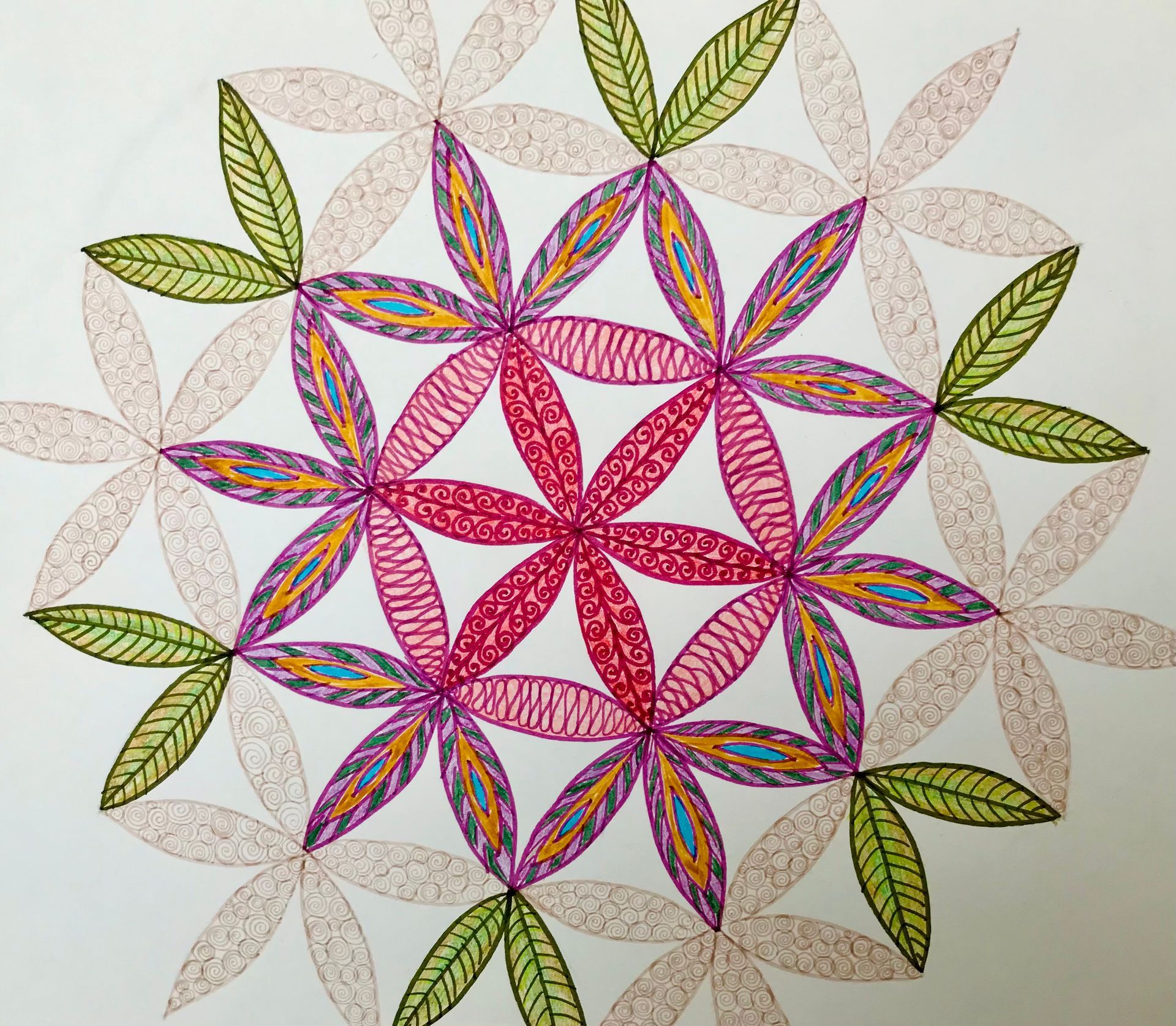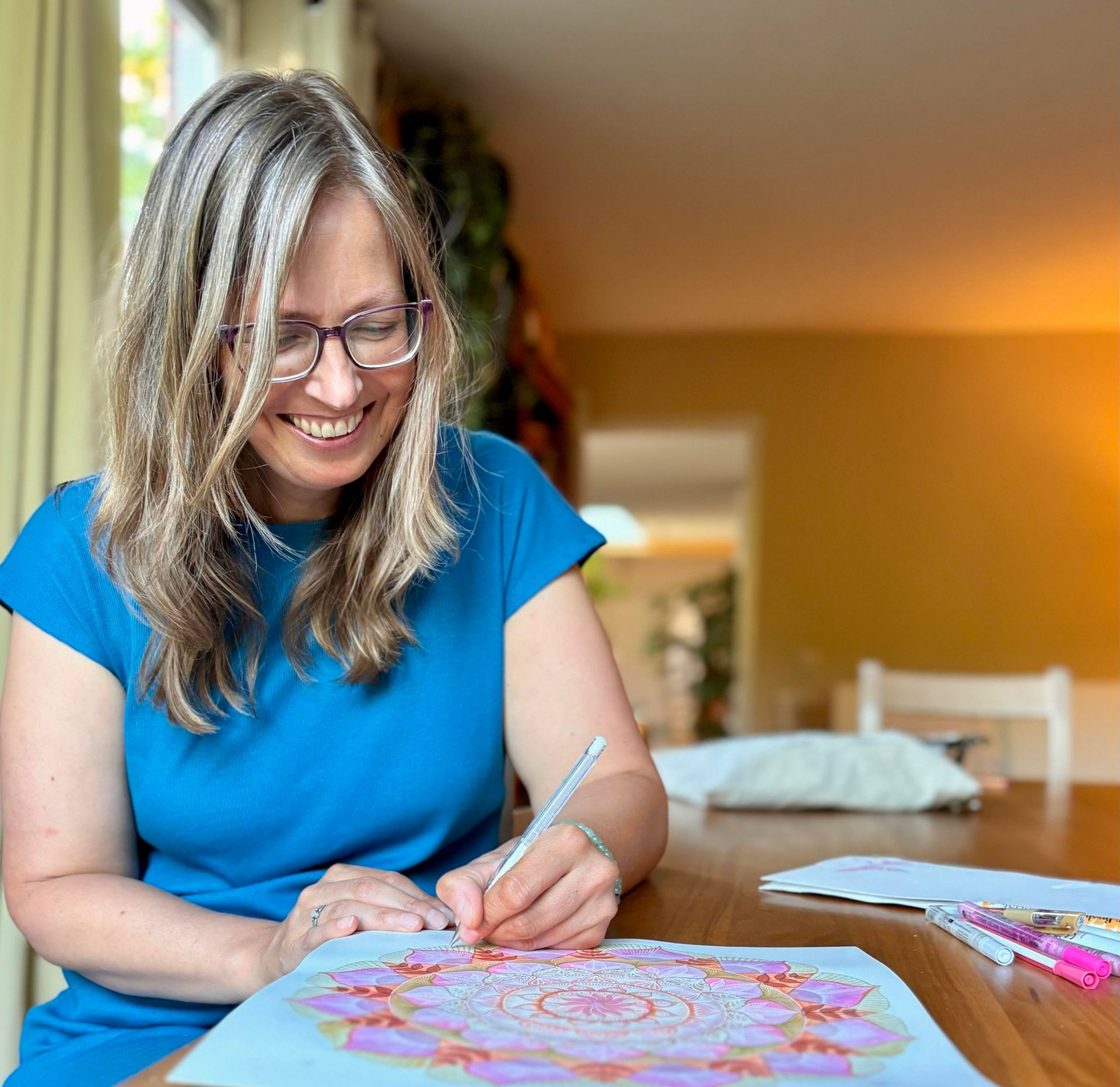 Om aan mijn liefde voor mandala's en heilige geometrie tegemoet te komen, teken ik regelmatig en ik vind het ook heel fijn om dit samen met anderen te doen. Daarom geef ik workshops waarin ik mensen meeneem in de heerlijkheid van kleuren en vormen en in het moment zakken.
